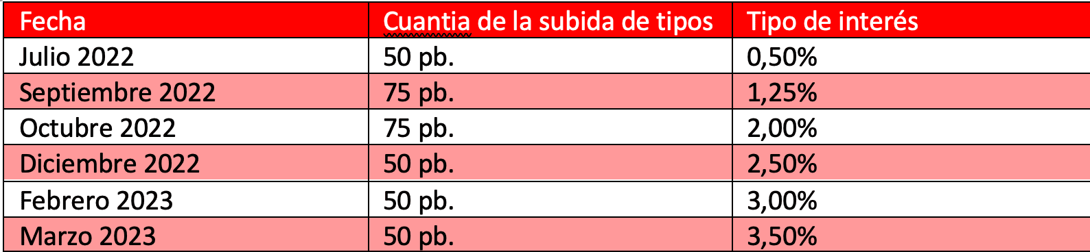 La alta inflación por los desequilibrios provocados por el Covid19 y la guerra en Ucrania han provocado subidas en los tipos de interés desde el BCE.