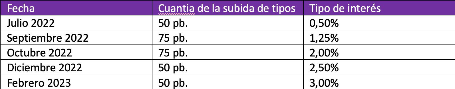 2.- Las subidas de tipos de interés más pronunciadas, de 75 puntos básicos (pb), se ordenaron en septiembre y octubre de 2022.