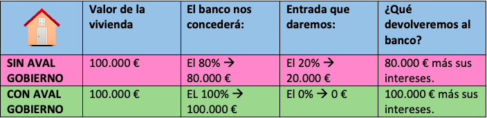 Lo que nos concede el Gobierno a través del ICO, es un aval para poder acceder al 100% de lo que cuesta la vivienda.