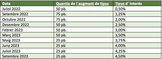 L’Euribor ha d’arribar ja al seu punt més alt i al 2024 i 2025 s’indica que l’índex tindrà un valor més baix.