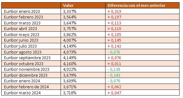 L’Euribor puja lleugerament al març de 2024 fins al 3,718%.
