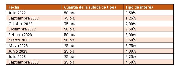 En l’última reunió de política monetària del BCE, que va tenir lloc el 7 de març de 2024, es va decidir de nou deixar els tipus d’interès en el 4,5%. Així que no podem afegir cap línia més a la taula que us presentem de les 10 pujades ordenades pel BCE durant el 2022 i 2023 i que van provocar l’espectacular alça de l’Euribor.