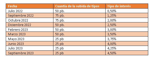 The penultimate and last rows show how the mortgage installment would be affected if the Euribor were to rise to 4.5% and 5%. However, the danger has clearly receded, and we are not going to reach those high Euribor values.
