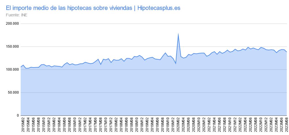 So let’s go directly to the most updated data. The average amount of mortgages on housing in Spain decreased by 4.6% in August 2023 compared to the same month last year, standing at about 138,171 €.